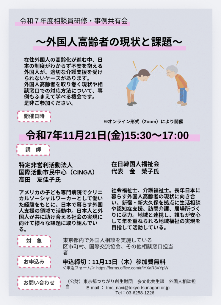 [講師登壇のお知らせ]外国人高齢者の現状と課題