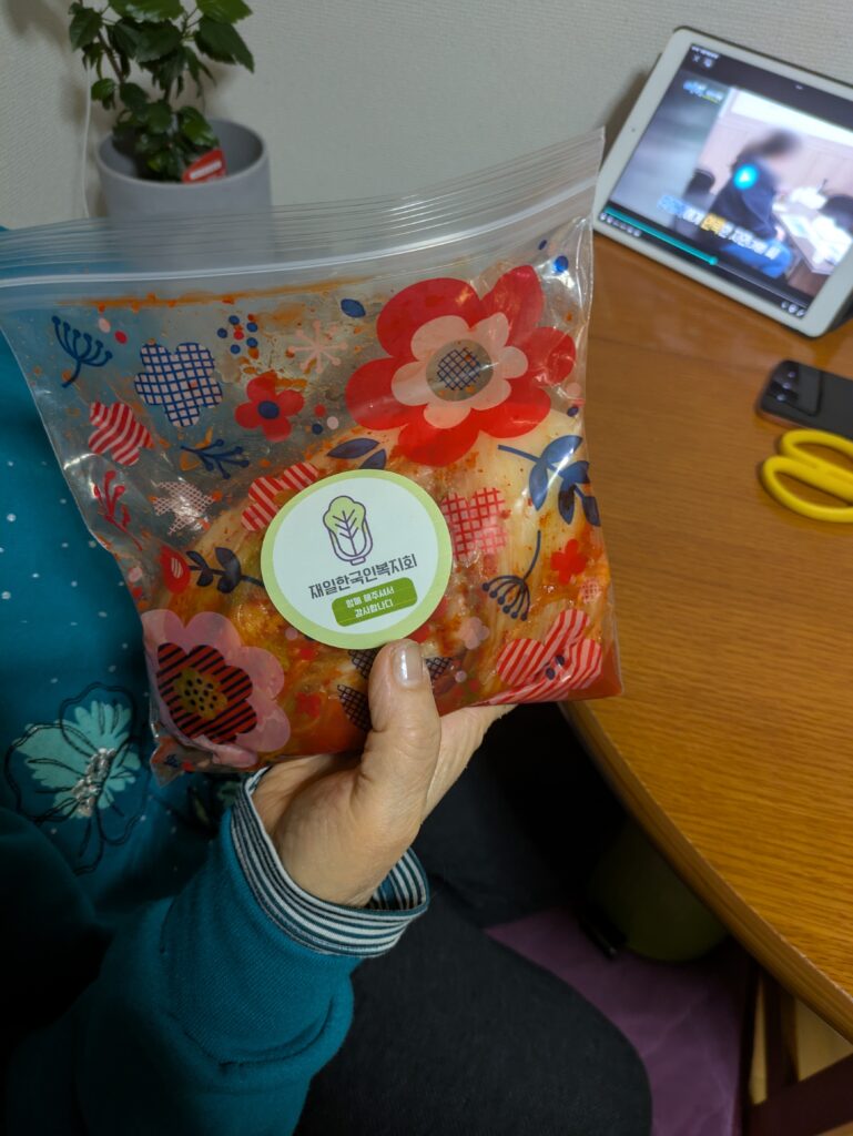 心を込めて漬けたキムチは、ひとり暮らしの高齢者の方々や支援を必要とされている地域の皆さまへお届けしました。また、地域で共に活動している いぶき町会にも、温かい気持ちを添えてお渡ししました。